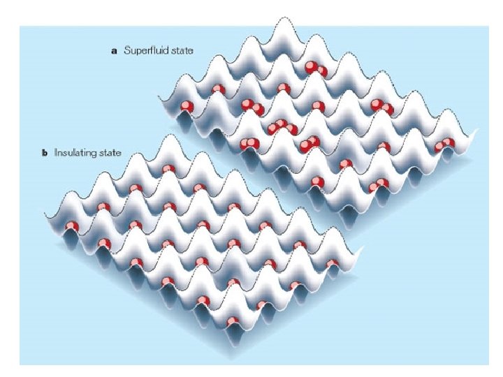 The Bose-Einstein condensate in a periodic potential “Eggs in an egg carton” Lowest energy state of a single particle minimizes kinetic energy by maximizing the position uncertainty of the particle