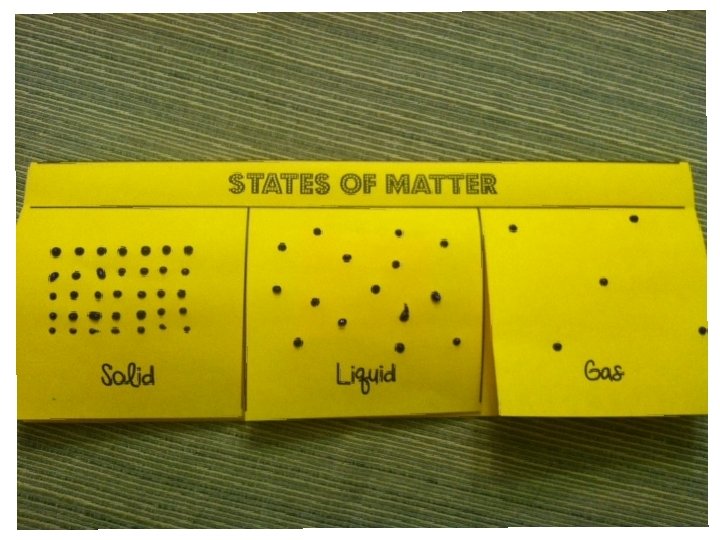 Each card has with either the name of the category, a definition, an example, or a supporting fact and they will need to wander around the room trying to connect with the people who are in the same state of matter.