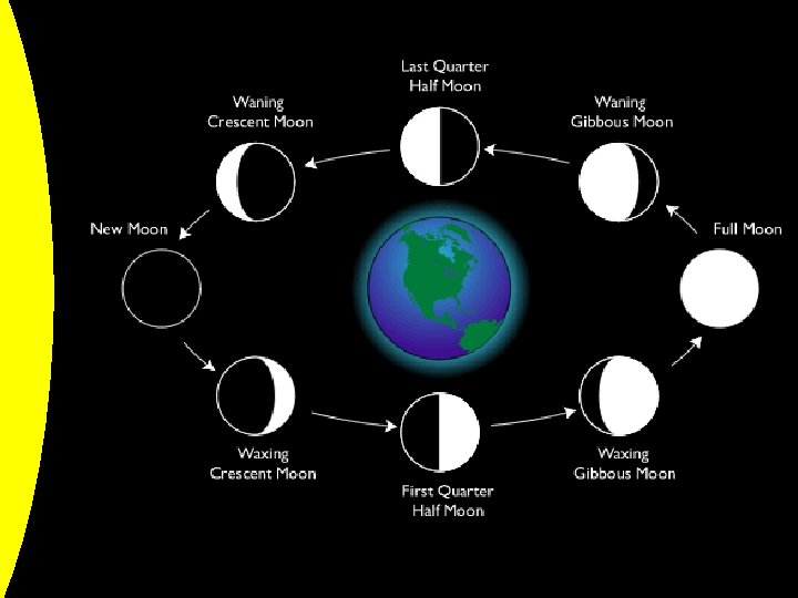 Why does the moon The moon orbits the earth. The only reason we can see As the moon travels around Only one half of the moon is appear to change It takes 28 days for the moon thethe moon is because it reflects earthever we see different lit shape? to go around the earth once the light from the sun amounts of the lit side of the moon