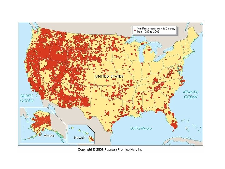 Fire suppression • 20 th century approach – put fires out!! • Trees per acre increased dramatically • In 1970 s decision was to let fires started naturally burn; human-caused extinguished • Prescribed burns – Formerly “controlled burns” – Los Alamos, NM, burned in May 2000; 280 homes destroyed