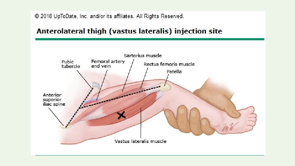 Injection Site INTRAMUSCULAR: < 3 years: Anterolateral thigh “Vastus lateralis” > 3 years: Deltoid SUBCUTANEOUS: <12 months: Fatty tissue over anterolateral thigh ≥ 12 months: Fatty tissue over upper-outer triceps BCG VACCINE: Intradermal “deltoid region”