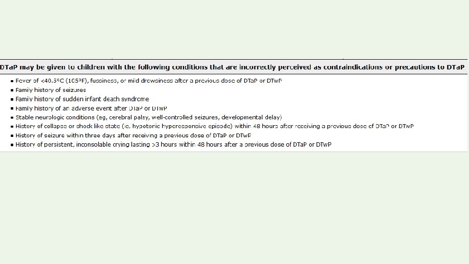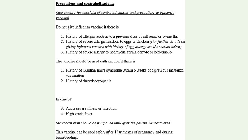 Screening Questions • Is the child sick today? • Does the child have allergies to medications, food, or any vaccine? • Has the child had a serious reaction to a vaccine in the past? • Has the child had a seizure, brain or nerve problem? • Has the child had a health problem with asthma, lung disease, heart disease, kidney disease, metabolic disease such as diabetes, or a blood disorder? • Does the child have cancer, leukemia, AIDS, or any other immune system problem? • Has the child taken cortisone, prednisone, other steroids, or anticancer drugs, or had xray treatments in the past 3 months? • Has the child received a transfusion of blood or blood products, or been given a medicine called immune (gamma) globulin in the past year? • Is the person pregnant or is there a chance she could become pregnant during the next month? • Has the child received vaccinations in the past 4 weeks?