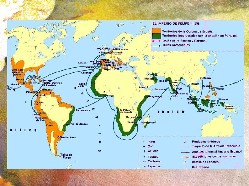 PHILIP II § Felipe was born in 1527. • In 1554 before his marriage to Mary Tudor he got the thrones of Naples and Sicily § Spain reached the peak of its power: “The sun never sets”. § He established the capital in Madrid (1561).