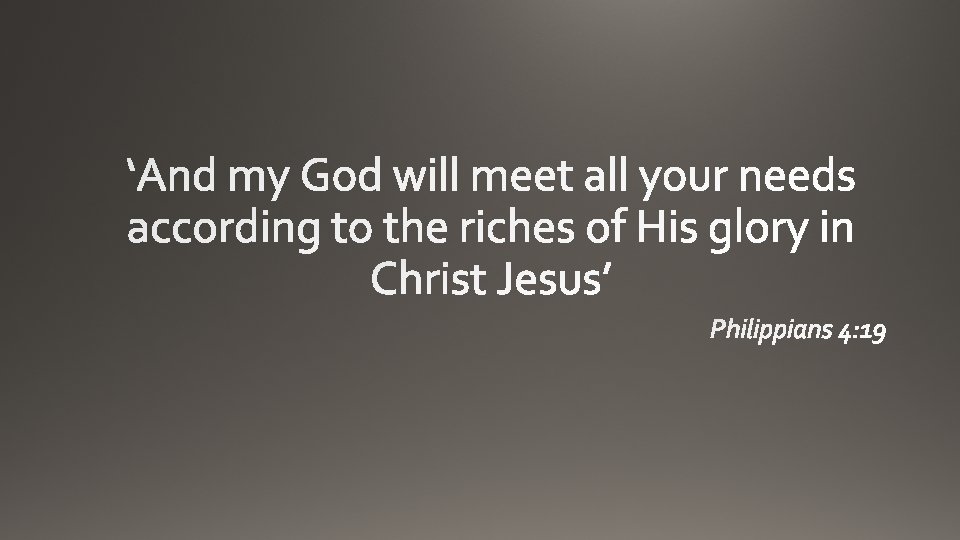 And my God will meet all your needs according to the riches of his glory in Christ Jesus. Philippians 4: 19 (NIV)