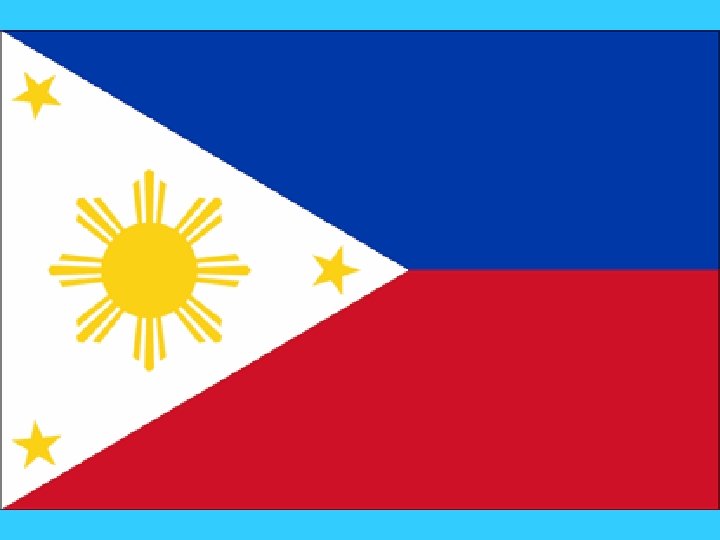 The blue field stands for common unity and the noble aspirations of the Filipino people. The white field Thefor triangle stands purity with The sun represents thein The eight rays of the sun equal sides of the flag gigantic strides that have been the triangle represent the is symbolic of equality made by the Sons of this land first eight united provinces among men. on that the road to progress revolted for our and civilization. independence 3 stars for the three major geographical divisions of the country – Luzon, Visayas and Mindanao. The red field symbolizes the willingness of the Filipino people to shed blood in defense of their country.
