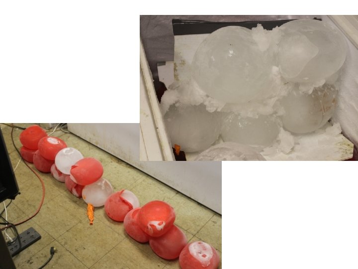 Winter experimentation. • Because of the limited number of students, the path of the course can be shaped to suit the skills and interests of the all, students and staff alike. In this particular case we even have the opportunity to let the course schedule be influenced by the weather, as the plan is to experiment with the construction of ice structures outside on the campus- ice being the cheapest material available for relatively large scale structures. • To have a large supply of ready-made ice available I suggest that everybody (collectively) buy a pack of one hundred 12 inch balloons. These balloons can hold about 5 liters of water, so after filling and freezing, every student will have half a ton of ice available for further experimentation this winter.