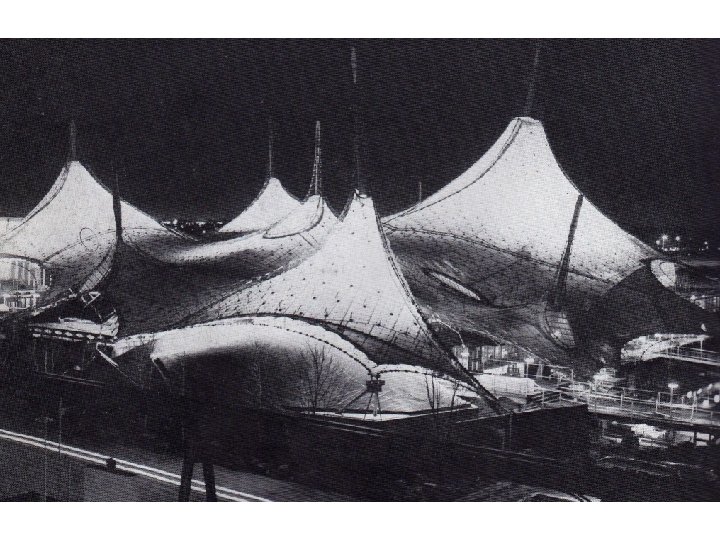 • • • • • • Types of single- and double-curved structures: Form passive structures: Rigid materials: stone, brick, ice, snow Plastic Materials: adobe, concrete, water (in a freezing environment) Timber: Timber shells, timber frameworks Steel: Steel framed shells, steel thin shells Form passive structures: Fabric surfaces Methods for rigid materials: Fully supported by scaffolding Only ‘outline’ form work Methods for plastic materials: Fully supported by scaffolding Rapid prototyping (like swallows) Methods for timber: Prefabrication frame work In-place thin shell Methods for steel: Pre-fabrication frame work In-place thin shell Methods for fabric or cable-net structures: Pre-fabrication and installation on the site