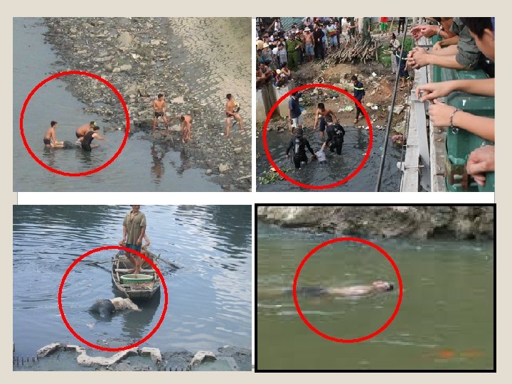 2. NGUYÊN NH N BỊ ĐUỐI NƯỚC Đó là do các em: + Không biết bơi. + Chơi gần sông, ao, hồ…, không có người lớn trông chừng. + Đi bơi không có người lớn biết bơi đi kèm. + Không biết các nguyên tắc an toàn khi đi bơi. + Bị lũ cuốn trong mùa lũ. + Đi tàu, xuồng, thuyền, đò… không mặc áo phao. + Cứu bạn chết đuối khi mình không biết bơi hoặc bơi không giỏi. + Dễ bị bạn bè khích động (đặc biệt các em trai) làm những việc nguy hiểm như: nhảy cắm đầu, bơi thi ở nơi nước sâu, chảy xiết…