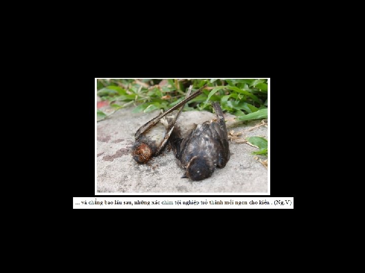 Từ đây tới hết slide show chạy tự động, xin đừng đụng tới keyboard hay mouse Con chim mái nầy bị thương không bay được.