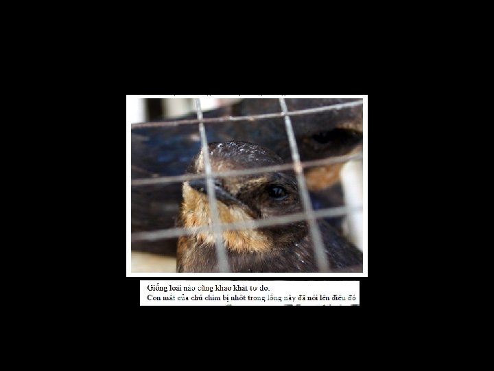 Một con chim khác lại nói: “Nếu không ai mua, họ sẽ không làm vậy, họ đã cho chúng tôi uống nước thuốc, chúng tôi không thể bay xa, cho dù bạn thả ra, chúng tôi cũng sẽ bị bắt về và lại bán, và lại bị bắt. Nếu bạn không mua, họ sẽ chẳng bao giờ cần bắt chúng tôi, sẽ không bao giờ cần cho tôi uống thứ nước thuốc khủng khiếp đó, làm ơn để chúng tôi hy sinh và những con chim khác sẽ không bao giờ chịu chung số phận. Làm ơn!”. . . (tác giả Chim Én) Và đây những con chim không lo sợ bàn tay người không cầu phước. Đây là những con chim chết vì bị nhốt lâu trong lồng chật hẹp và đói khát.
