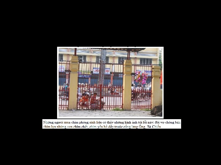 một cảnh nhộn nhịp thả cá phóng sinh. . . Truyền thống chim phóng sinh giờ đây là một việc làm độc ác cần xóa bỏ. Nếu những người kia cần tiền, họ có thể bán nhang, bán vé số, có thể bán kinh, bán hoa. Xin đừng hành hạ những sinh vật bé nhỏ và vô tội. Những người phóng sinh xin đừng đưa tiền, đừng tiếp tay cho hành động độc ác nọ, xin thương lấy lũ chim, đó cũng là một sinh mạng. (trích Internet)