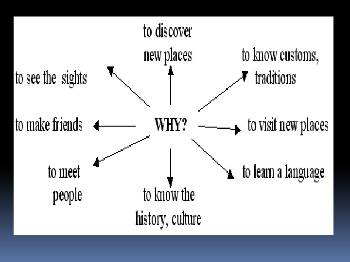 Why do people travel? • It seems to me… • I think … • In my opinion… • To my mind… They want to visit new countries. They like to rest in different countries. People travel on business. People have money and time