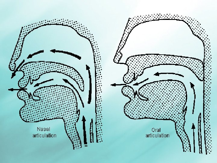 Manners of Articulation: Oral Vs Nasal • Oral sounds are produced with air flowing through only the mouth • The velum can be lowered to allow air to pass through the nasal passages, producing a sound that is nasal.