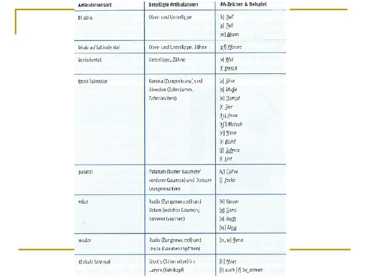 Artikulationsort der Konsonanten