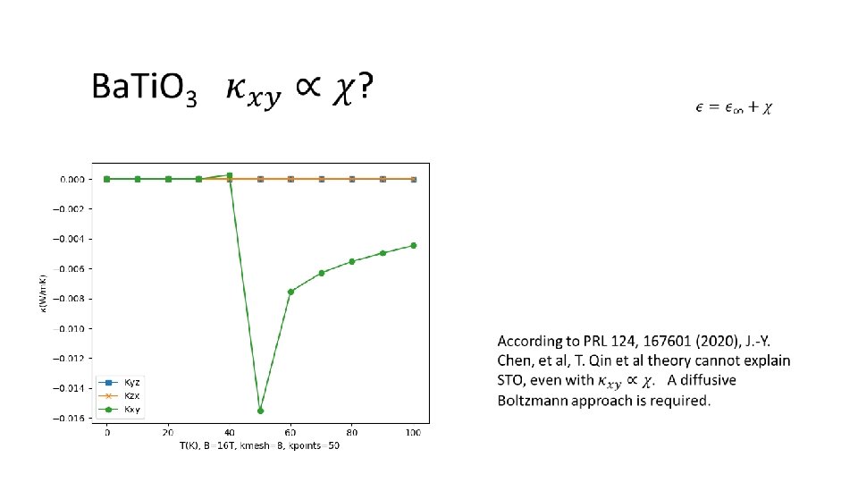 Phonon Hall effect First phonon Hall experiment on Tb 3 Ga 5 O 12 at T=5. 45 K, with kxy estimated to be 0. 45 (m. W/K-m) at B = 10 T. C. Strohm, G. L. J. A. Rikken, and P. Wyder, PRL 95, 155901 (2005). Sr. Ti. O 3 Hall experimental result, X. Li, B. Fauqué, Z. Zhu, and K. Behnia, PRL 124, 105901 (2020).
