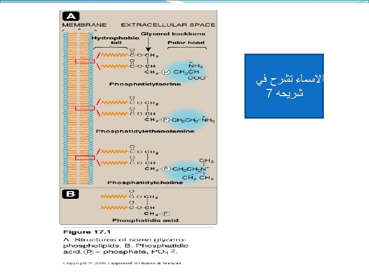 § Membrane phospholipids also function as : 1 - a reservoir ﺣﺎﻓﻆ for intracellular messengers, and, 2 -for some proteins, phospholipids serve as anchors ( ﻣﺮﺳﺎﻩ ) ﻣﺜﺒﺖ to cell membranes. § Non-membrane-bound phospholipids ﻓﻲ ﻳﺪﺧﻞ ﻟﻢ ﺍﻟﺬﻱ ﺍﻟﻔﻮﺳﻔﻮﻟﺒﺪﺯ : ﻭﻇﻴﻔﻪ ﺍﻟﺨﻠﻮﻳﻪ ) ﺣﺮ ( ﻟﻪ ﺍﻟﺠﺪﺭ ﺗﺮﻛﻴﺐ serve additional functions in the body, for example, 1 -as components of lung surfactant and 2 -essential components of bile, where their ﻫﻲ ﺍﻟﺒﺎﻳﻞ ﺗﻨﻈﻴﻒ ﻭﻇﺎﺋﻒ ﻟﻪ ﺍﻟﺬﻱ ﺍﻟﻤﻜﺎﻥ detergent properties aid "in the solubilization of cholesterol. ﺍﻟﻜﻠﻮﻳﺴﺘﺮﻭﻝ ﺍﺧﺮﺍﺝ ﻣﺜﻞ