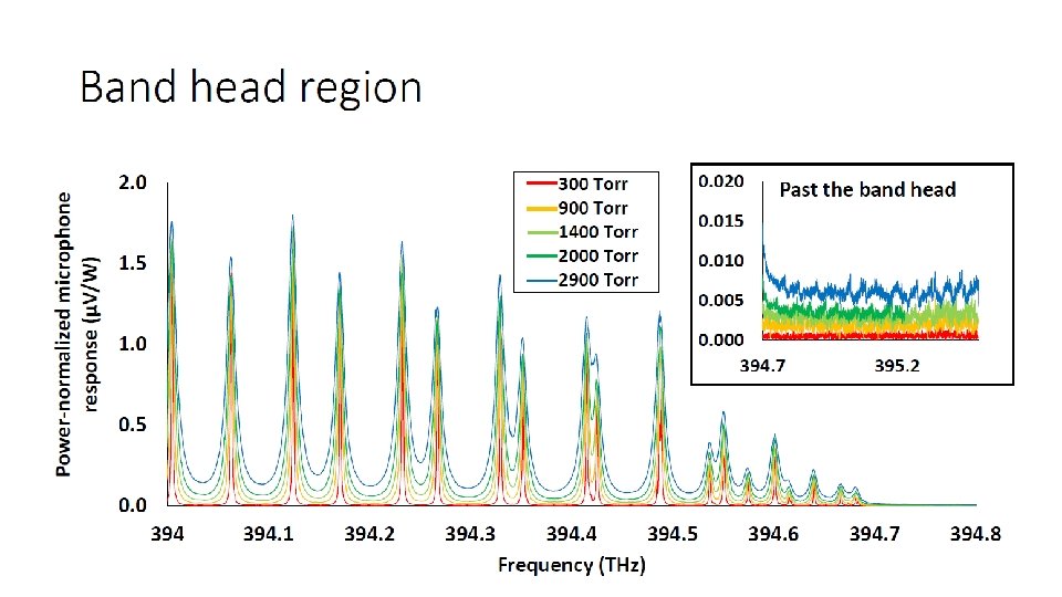 Spectrometer Properties • Modehop‐ free scanning across 5+ THz A‐Band • 2 MHz frequency resolution: WLM calibrated with stabilized He. Ne • ~1 day‐long scans with evenly spaced points • Pressure range: ~100‐ 3000+ Torr • Temperatures: Stability at 0. 6 K over 1 day • Planned lower temperature measurements 193 – 296 K (microphone limited)