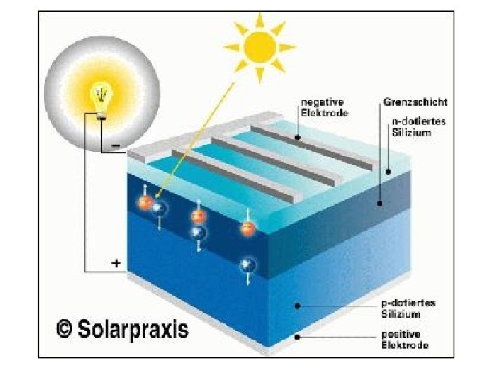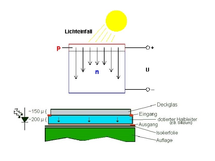 – photovoltaischer Effekt • basiert auf innerem photoelektrischen Effekt • an einem zusätzlichen pn-Übergang findet Ladungstrennung statt • Wandlung von Solarenergie in elektrische Energie