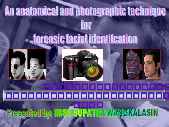 Photographic technique • The first stage of the method is to reproduce the original photographs as larger sized prints and at the same magnification. • Magnification is determined by using the interpupillary distance of the subjects as a standard reference.