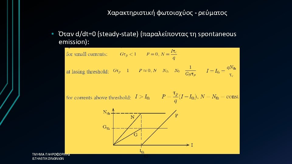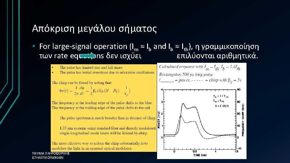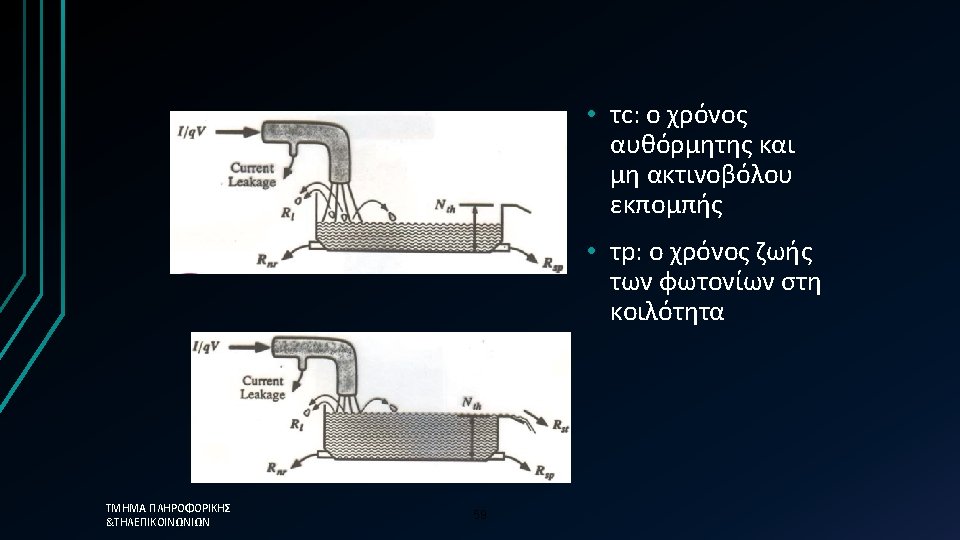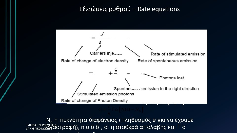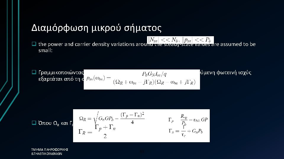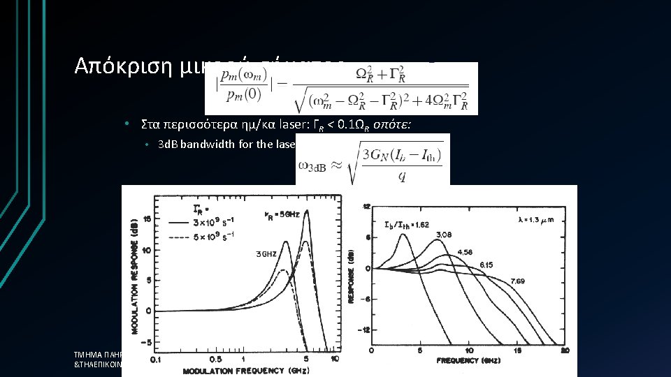 Απλοποιημένη προσέγγιση üThe photon lifetime, τph, is the fundamental limit üτph=0. 12 ps →Modulation frequency = 8. 3 THz ΤΜΗΜΑ ΠΛΗΡΟΦΟΡΙΚΗΣ &ΤΗΛΕΠΙΚΟΙΝΩΝΙΩΝ üHowever in reality the 58 limit is much less than this