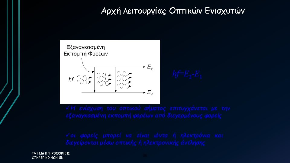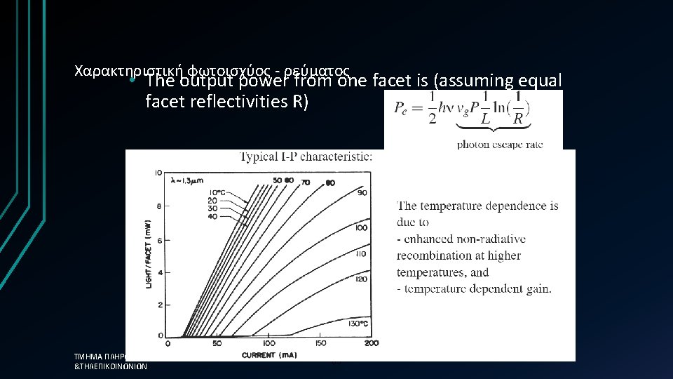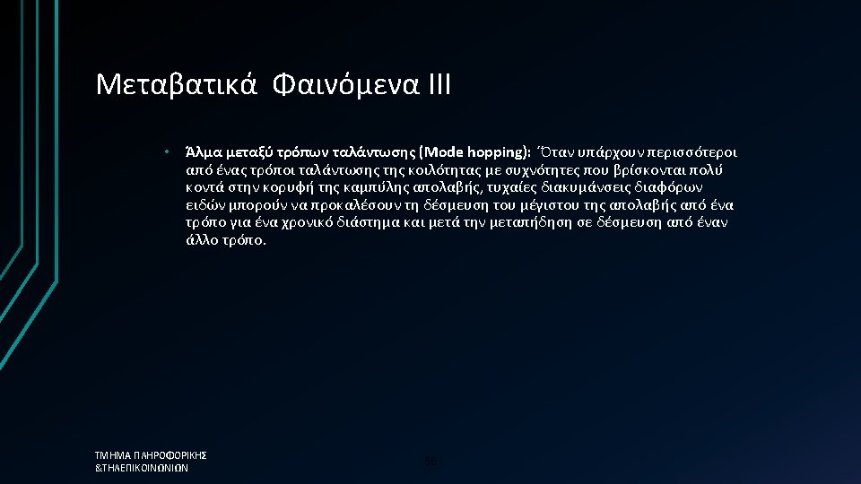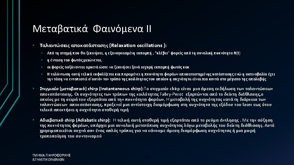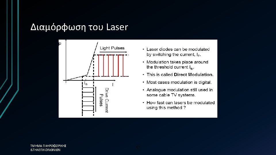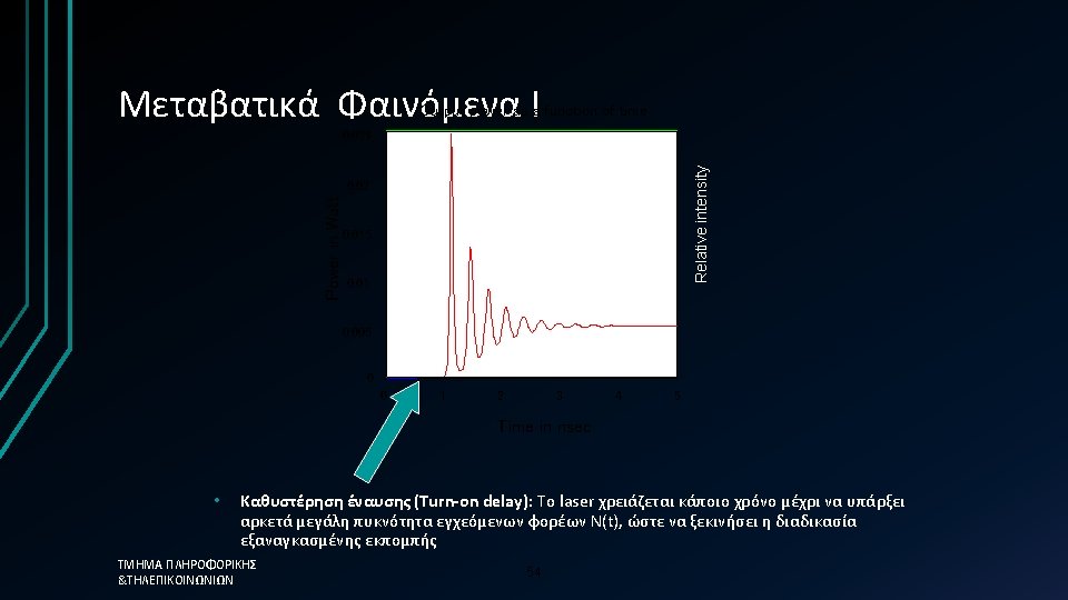 Απλοποιημένη προσέγγιση üThe photon lifetime, τph, is the fundamental limit üτph=0. 12 ps →Modulation frequency = 8. 3 THz ΤΜΗΜΑ ΠΛΗΡΟΦΟΡΙΚΗΣ &ΤΗΛΕΠΙΚΟΙΝΩΝΙΩΝ üHowever in reality the 58 limit is much less than this