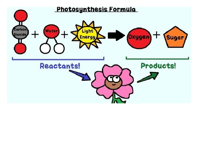 Assignment – Homework if you do not finish. • Grab a piece of Copy Paper and create mini- poster of photosynthesis. • You will need to show the formula • You will need to have a drawing • You will need to show (using arrows) all products and reactants • You will need to add color.