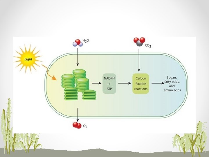 Light independent reactions • Cells then use G 3 P to build a wide variety of other sugars (such as glucose) and organic molecules. • Many of these interconversions occur outside the chloroplast, following the transport of G 3 P from the stroma. • The products of these reactions are then transported to other parts of the cell, including the mitochondria, where they are broken down to make more energy carrier molecules to satisfy the metabolic demands of the cell.