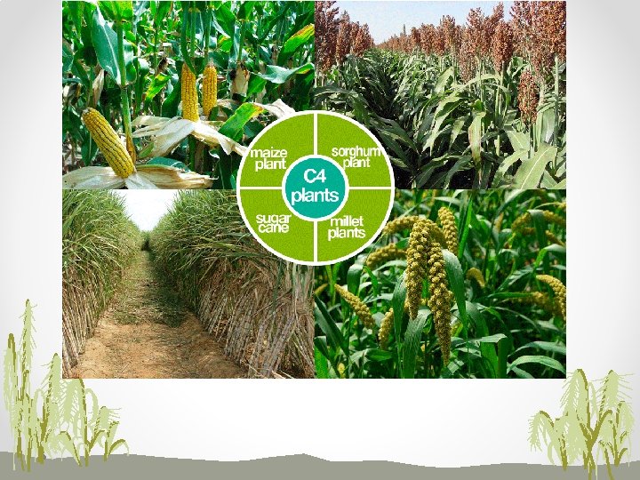 C 4 Photosynthesis • The C 4 photosynthetic carbon cycle is an elaborated addition to the C 3 photosynthetic pathway. • It evolved as an adaptation to high light intensities, high temperatures, and dryness. • Therefore, C 4 plants dominate grassland floras and biomass production in the warmer climates of the tropical and subtropical regions