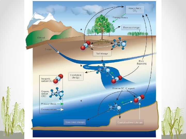 Photosynthesis • The building and breaking of carbon-based material — from carbon dioxide to complex organic molecules (photosynthesis) then back to carbon dioxide (respiration) — is part of what is commonly called the global carbon cycle • Indeed, the fossil fuels we use to power our world today are the ancient remains of once-living organisms, and they provide a dramatic example of this cycle at work. • The carbon cycle would not be possible without photosynthesis, because this process accounts for the "building" portion of the cycle