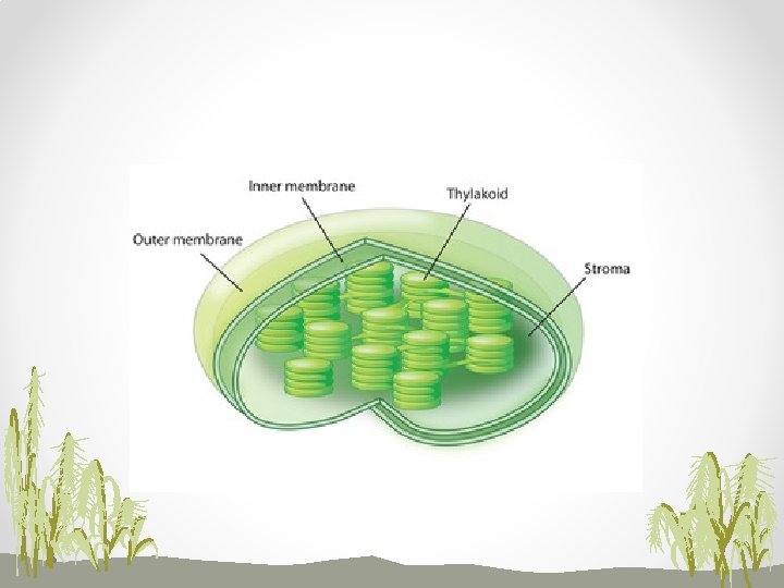 Photosynthesis • Chlorophyll, the primary pigment used in photosynthesis, reflects green light and absorbs red and blue light most strongly. In plants, photosynthesis takes place in chloroplasts, which contain the chlorophyll. • Chloroplasts are surrounded by a double membrane and contain a third inner membrane, called the thylakoid membrane, that forms long folds within the organelle.