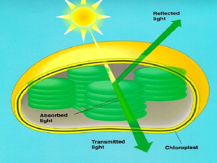 • Chlorophyll a and b absorb light mostly in the red and blue regions of the spectrum • Carotene and xanthophyll absorb light from other regions and pass the energy to chlorophyll a. • Accessory pigments do allow sunlight to fall on Chlorophyll a and prevent it from oxidation.
