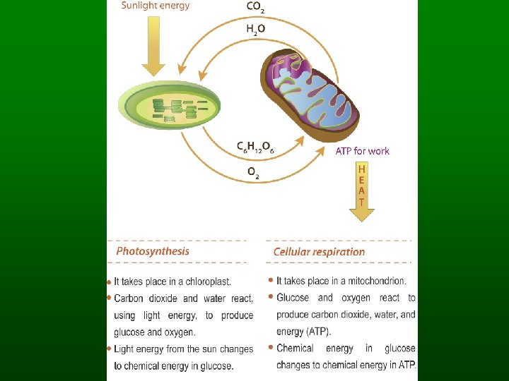 Overview of photosynthesis and respiration SUN RADIANT ENERGY PHOTOSYNTHESIS GLUCOSE RESPIRATION CELL ACTIVITIES ATP(ENERGY)