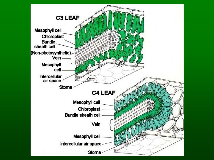 C 4 and C 3 Pathways - Differences in Anatomy C 4 - Kranz Anatomy CO 2 H 2 O C 3 H 2 O CO 2 H 2 O and CO 2 pass through stomatal openings