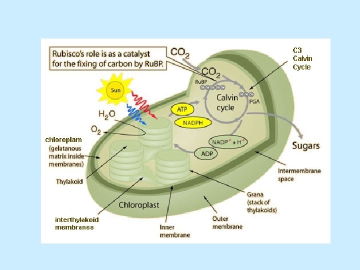 Siklus Calvin ( Fiksasi C 3) (36 C) 6 C-C-C-C (6 C) 6 CO 2 (unstable) (30 C) 6 C-C-C Ru. BP (30 C) glucose 6 C-C-C 12 PGA (36 C) 6 ATP 6 NADPH 6 C-C-C 6 ATP C 3 6 C-C-C (36 C) 6 C-C-C 12 G 3 P (6 C) C-C-C-C Glucose