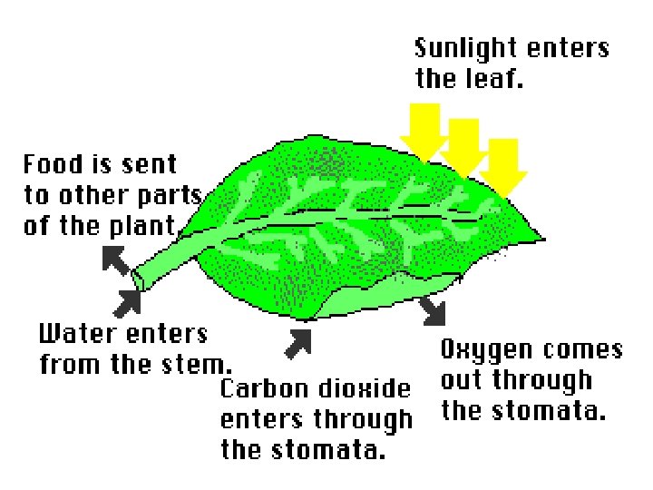 In Words… Plants take in the raw materials: carbon dioxide, water, and energy (sunlight). The CHLOROPLAST of the plant cells turn all of that into glucose (sugar) and oxygen gas