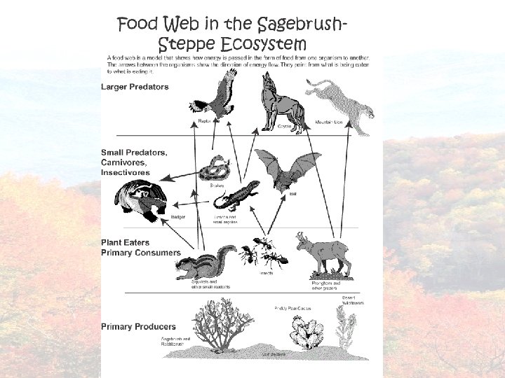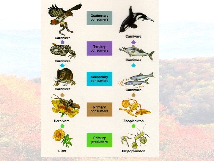 Trophic levels • Autotrophs make up first trophic level • Heterotrophs make up the remaining trophic levels