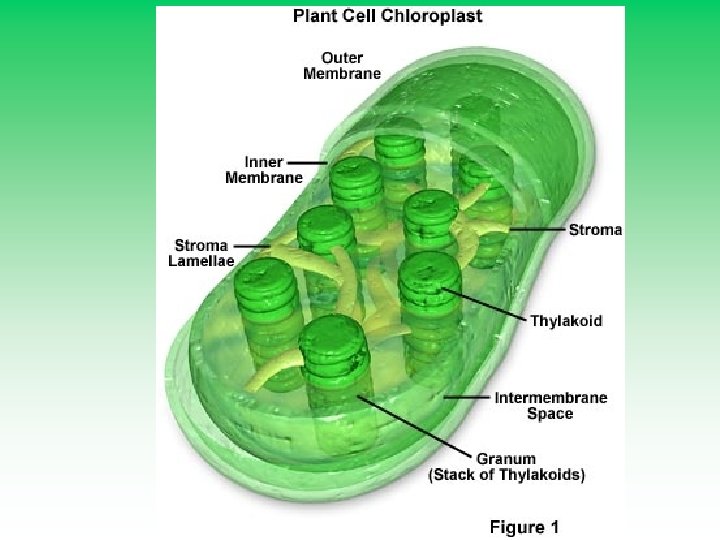 The chloroplast and the pigments • Remember the chloroplast is the cell organelle where photosynthesis occurs. • The chloroplasts contain thylakoid membranes (and stroma). • These membranes trap energy from the sun through their pigments (mainly chlorophyll), which are molecules that absorb specific wavelengths of sunlight.