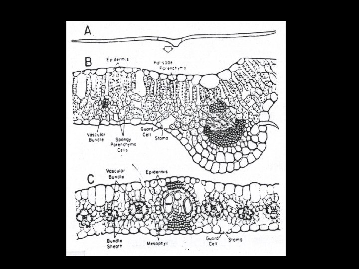Leaf anatomy of C 3 vs. C 4 plants