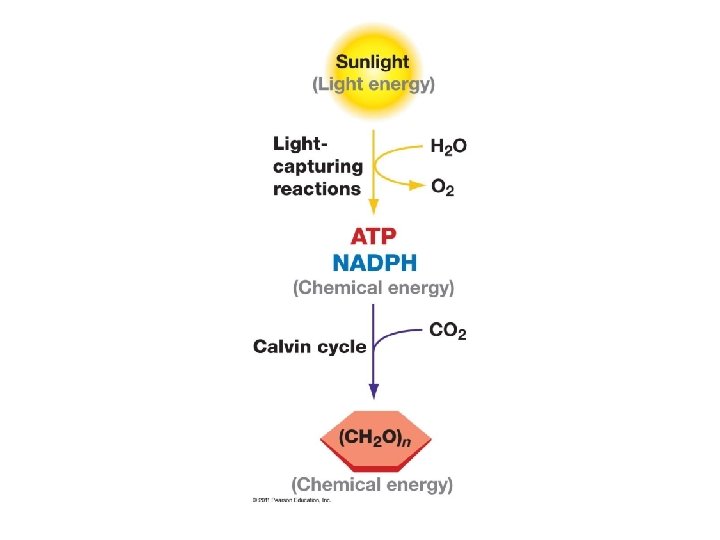 Summary of Photosystem II and I = The Light Reactions • uses light energy • H 2 O is split • O 2 is released • produces ATP • produces NADPH But still need to use CO 2 and make sugar!!! + CO 2 + H 2 O O 2 + sugar