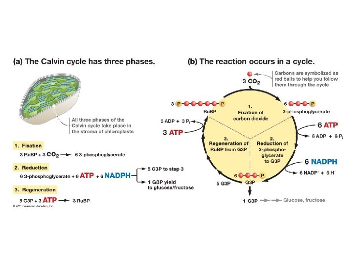 For the Calvin Cycle… • write the equation for the Fixation phase. • …. Reduction phase. (include the amounts of G 3 P and where they go) • …Regeneration phase.