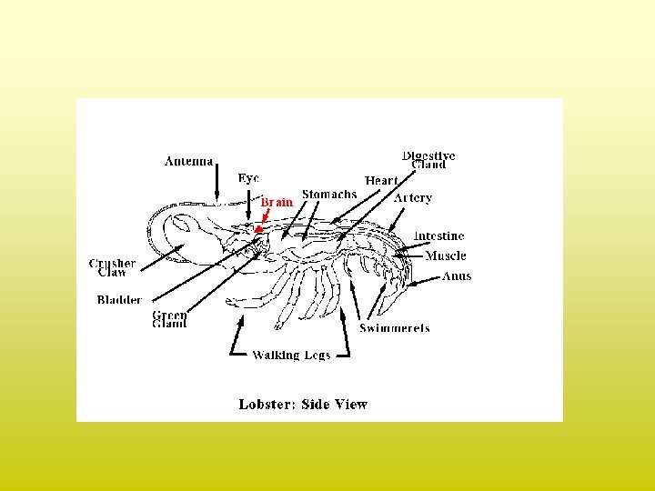 • 9. Subphylum Crustacea • A. Examples – crab, lobster, shrimp, crayfish, type if plankton, barnacles (sessile existence) rolly pollies. • B. Nauplius – Free swimming larvae • B. Two pairs of antennae • C. Several pairs of mouthparts • D. Appendages with 2 branches • E. Mandibles are specialized pair of mouthparts
