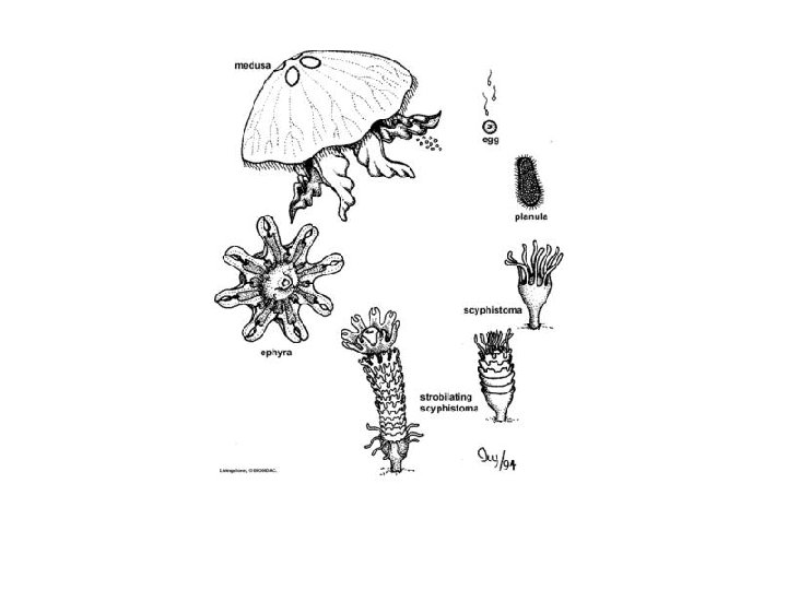Life Cycle cont. • The polyp resembles an upside-down jellyfish medusa. • Small umbrella like medusas break off from the polyp by budding (asexual)