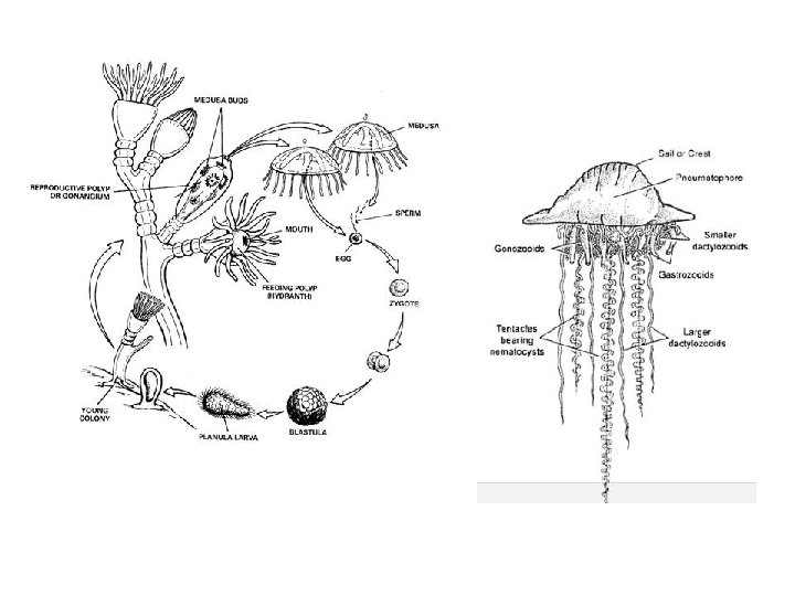 Life Cycle • Jellyfish have separate sexes • Both sexual and asexual reproduction • Sexual: external or internal (depending on species), sperm and egg form a zygote which grows into a swimming larva called the planula. • In some cases the planula attaches to a hard substrate and develops into a polyp.