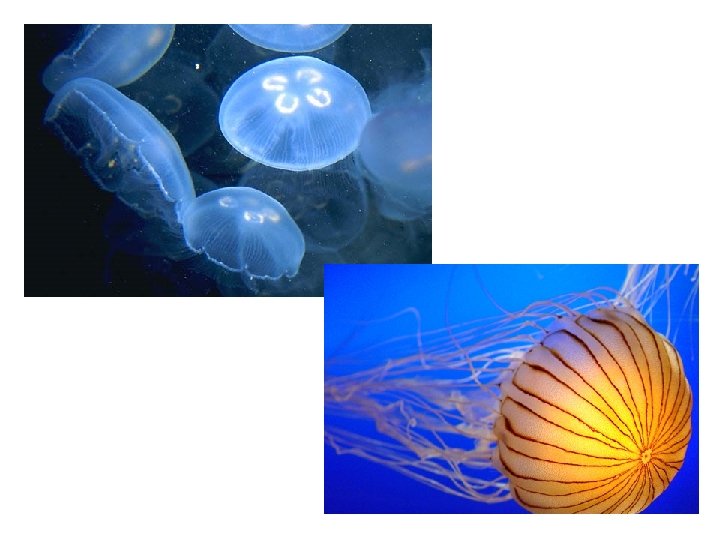 Class Scyphozoa • All marine; medusa is dominant life cycle • Mesoglea is a large part of the body (mostly dead matter) • Gastroderm have nematocysts; food may be eaten alive • More toxic than hydrozoans • Well developed sensory organs and glands - eyespot and chemoreceptors