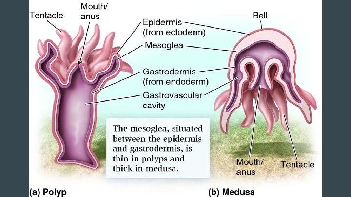 Cnidarian Characteristics -stinging cells ● Cnidocytes/nematocytes https: //www. youtube. com/watch? v=IJid. AI 1 WASo -radial symmetry -many are predators -have true tissues ● Mesoglea (the jelly)