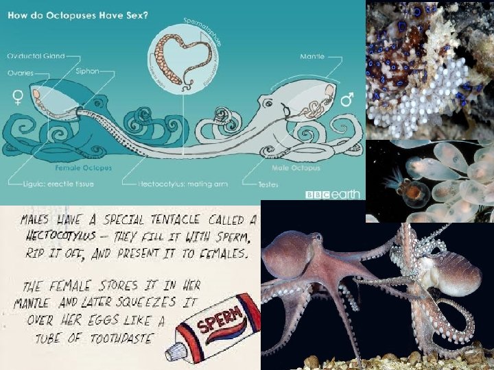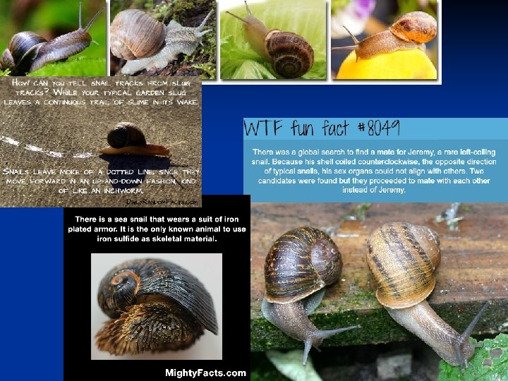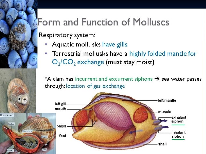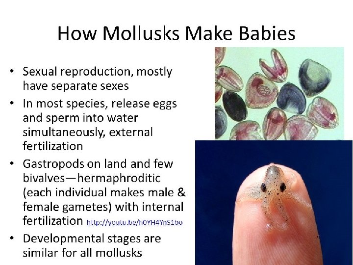 https: //www. youtube. com/watch? v=z. IEGQo 80 WTU 3 main groups of Mollusks n n n 1. Gastropods – shell-less or single shelled mollusks that move by using a muscular foot. Means “stomach footed” Most numerous group of mollusks ~ 75, 000 Gastropods are the only group to invasde land – snails! Ex. Sea hares – can squirt ink at predators Nudibranches – sea slugs, have chemicals in their bodies that taste bad. Can recycle nematocysts from cnidarians they https: //www. youtube. com/watch? v=_Ad. UJVUXhyg