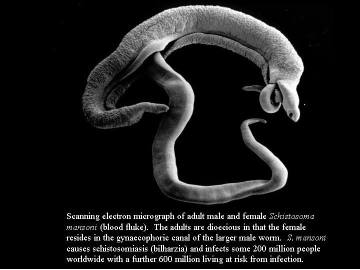 Schistosoma haematobium • often referred to as Bilharzia after Theodore Bilharz who discovered it. • found in parts of Africa, and parts of the Middle East, southern Europe and some parts of Asia. • Found primarily in the veins of the urinary bladder. Eggs released in urine. • They are least pathogenic