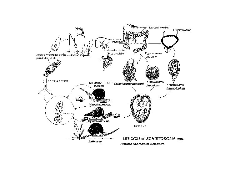 Epidemiology • • Human waste into water. Moslem religious practice of ablution Agricultural projects Irrigation extends snail habitats Use of night soil (human feces) Planting and harvesting of water crops Dependence of people on rivers.