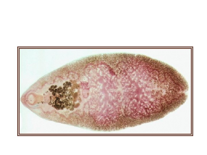 Order Opisthorchiata • • • Small to medium sized flukes Testes located at posterior end Lack cirrus pouch and cirrus Eggs hatch only after ingestion by snail Live in intestine of bile ducts of fishes, reptiles, birds, and mammals. • Second intermediate host are fishes