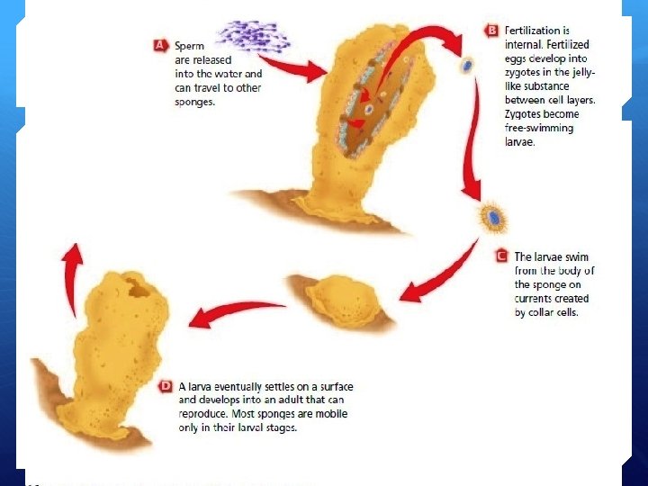 Reproduction 1. Sexual Mesenchyme cells produce eggs or sperm • Sperm is released into the water current • 2. Asexual reproduction • By gemmules which can become dormant survive adverse conditions • By budding